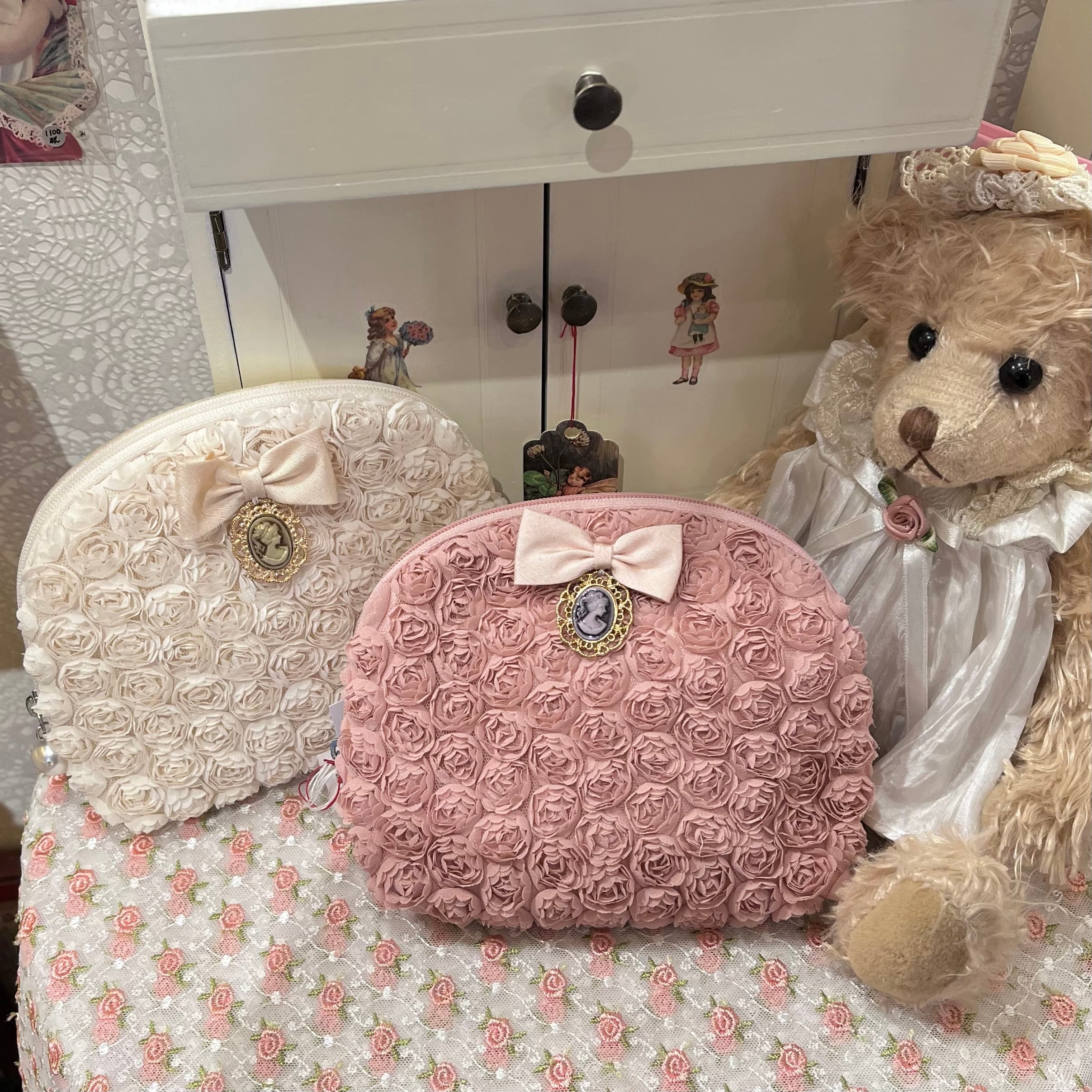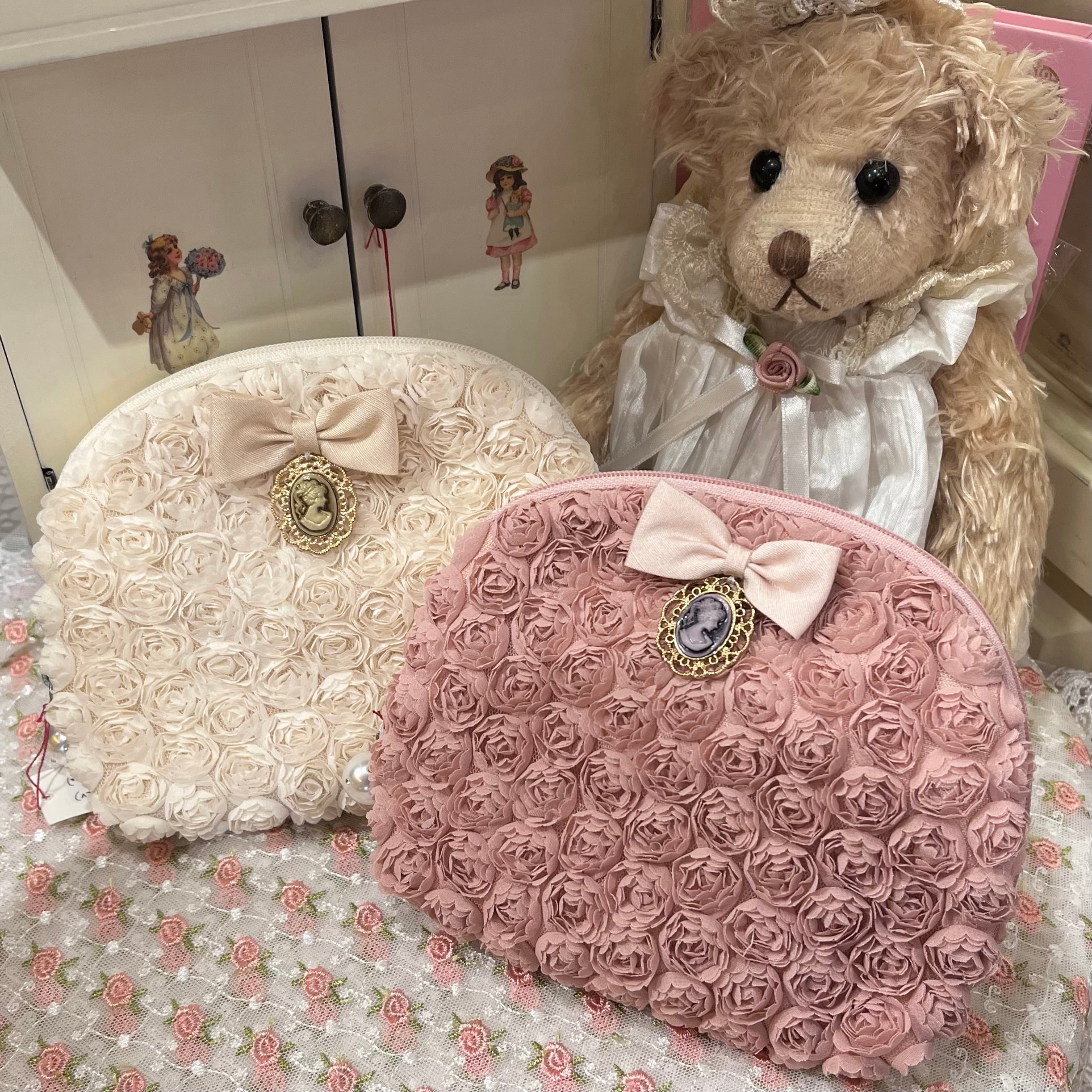 ローズのチュールレースにカメオチャームがかわいいシェル型のポーチです。