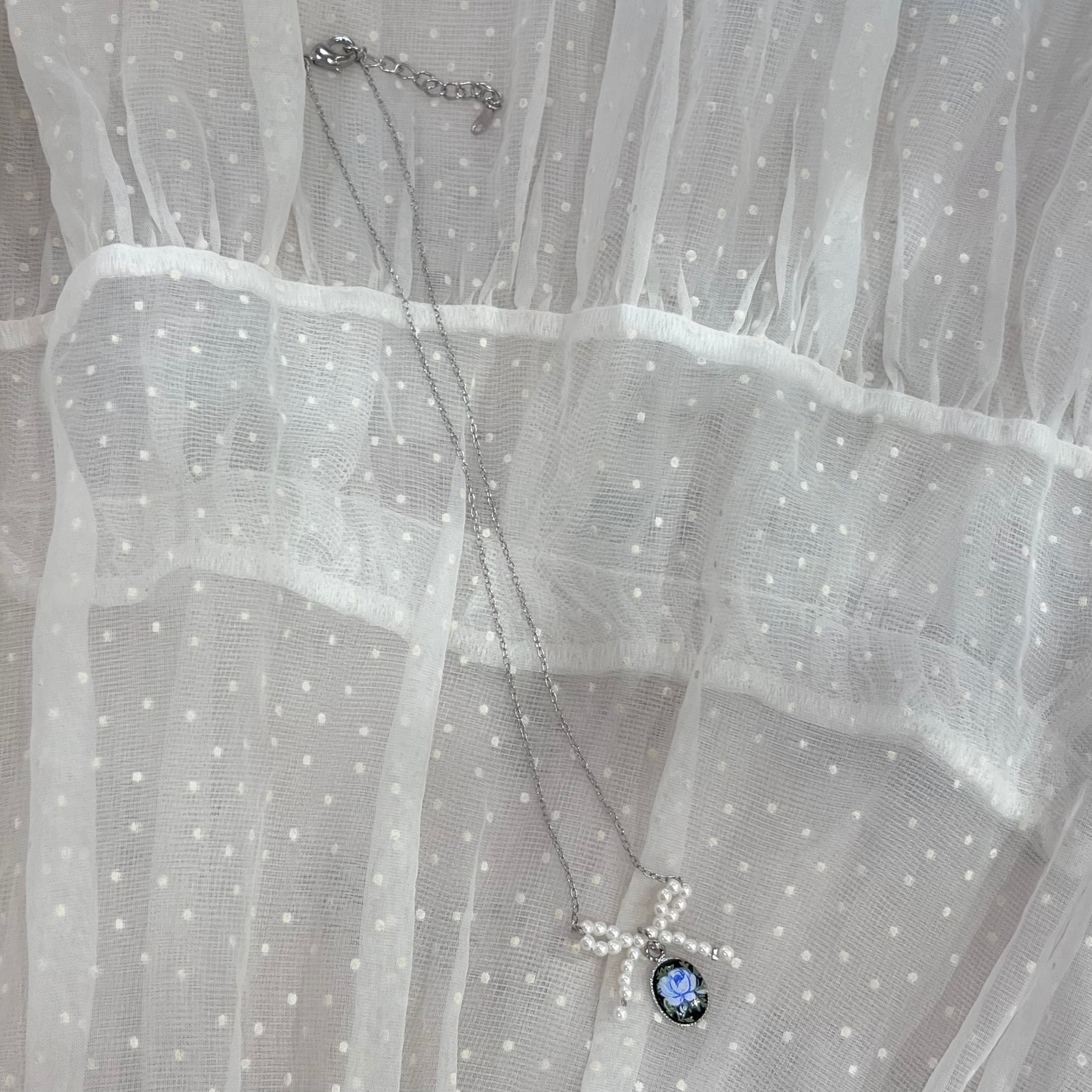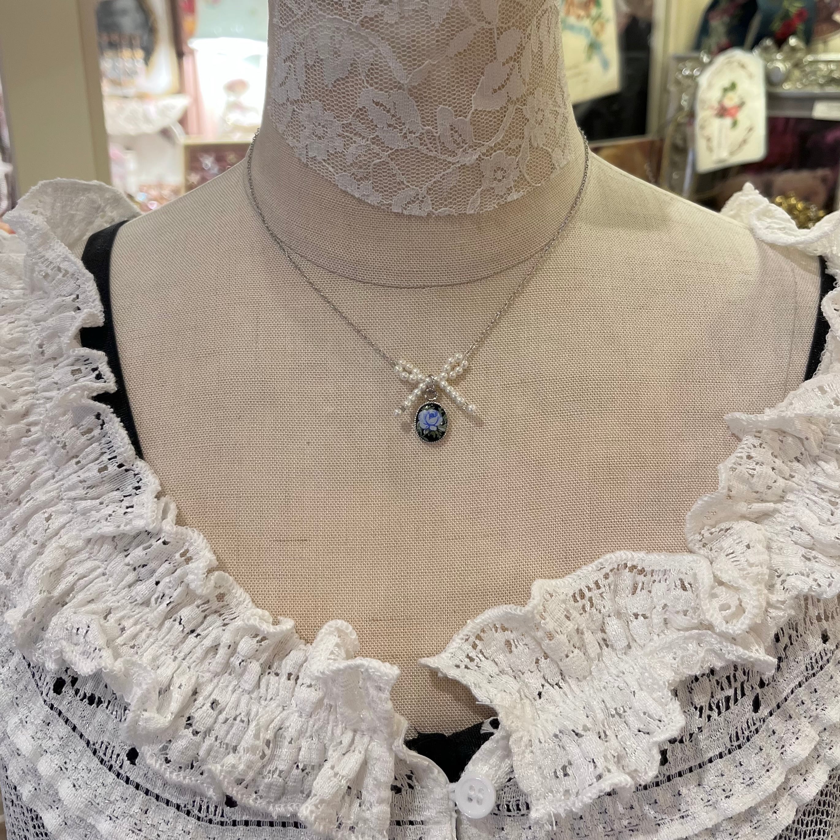 Pearl Ribbon Classical Necklace/ Blue Rose