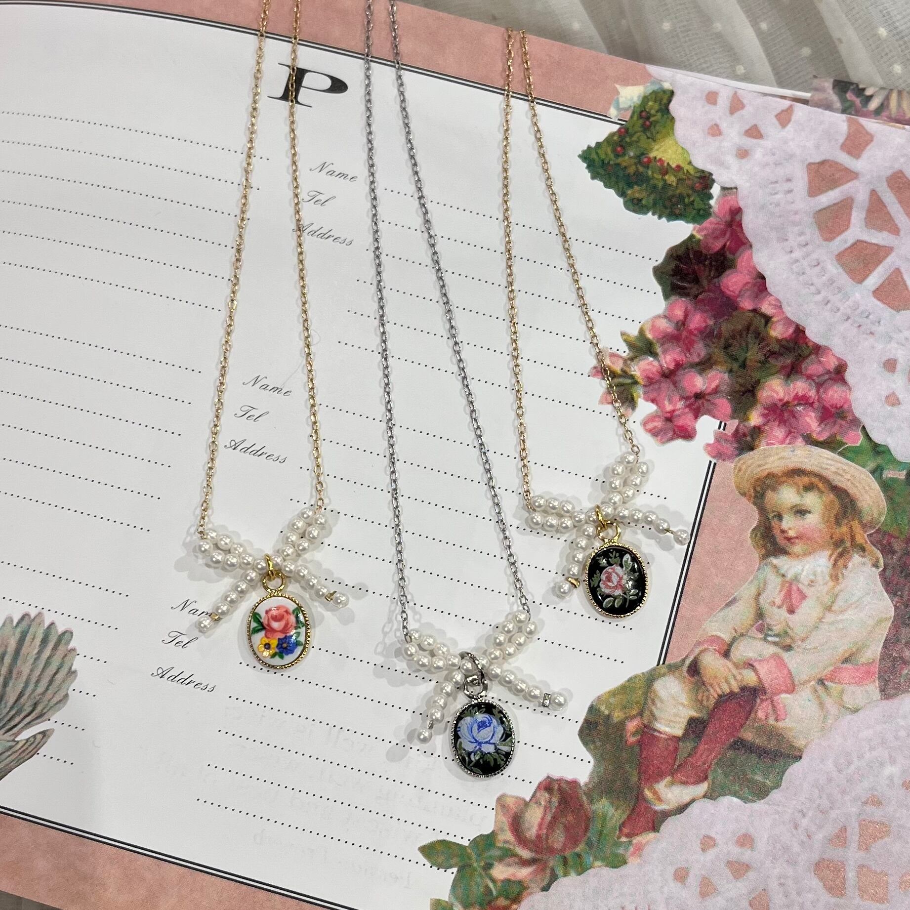 ※トップのローズ柄のカボションはヴィンテージのものを使用しています。
