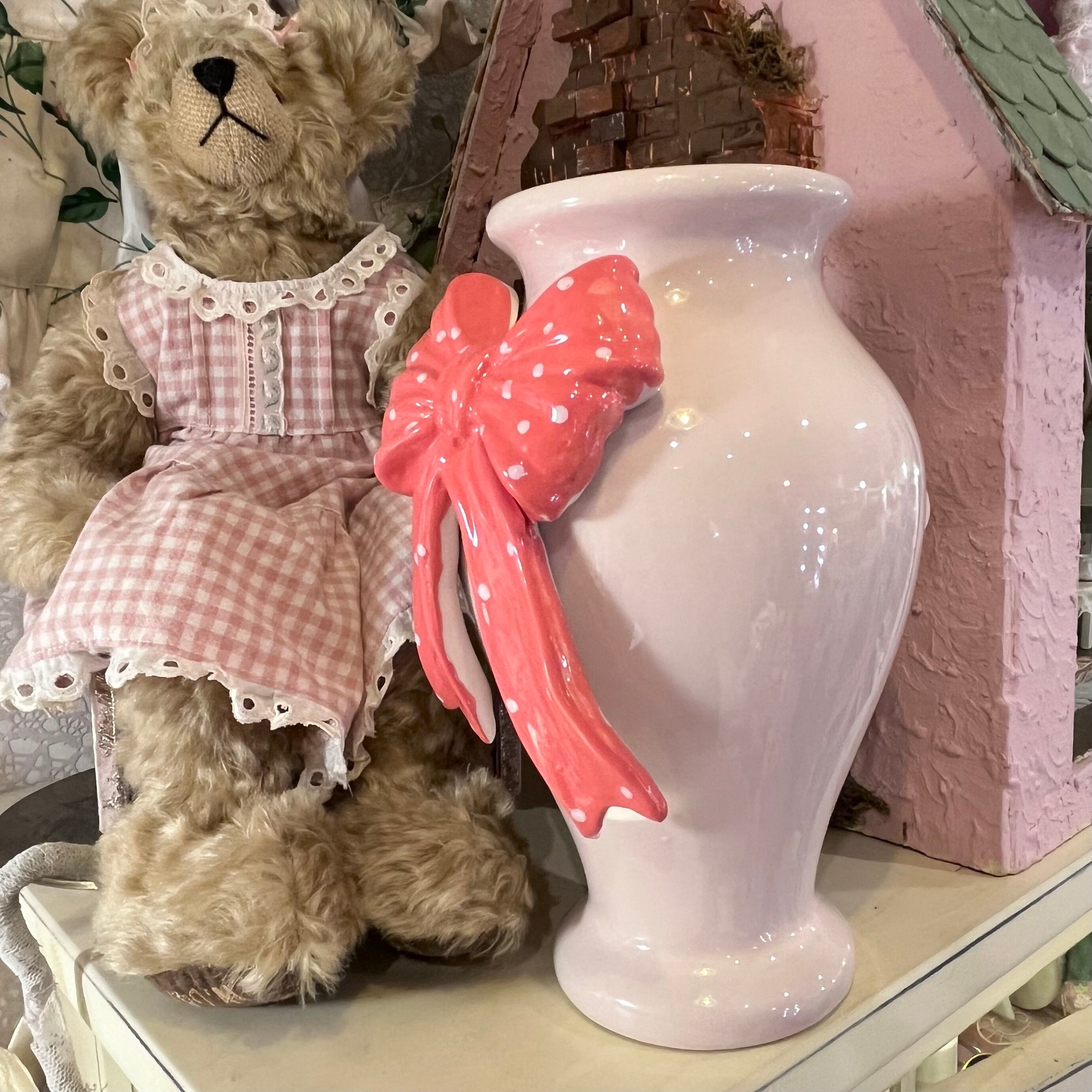 鮮やかなドットリボンがポイントのかわいらしいフラワーベース。