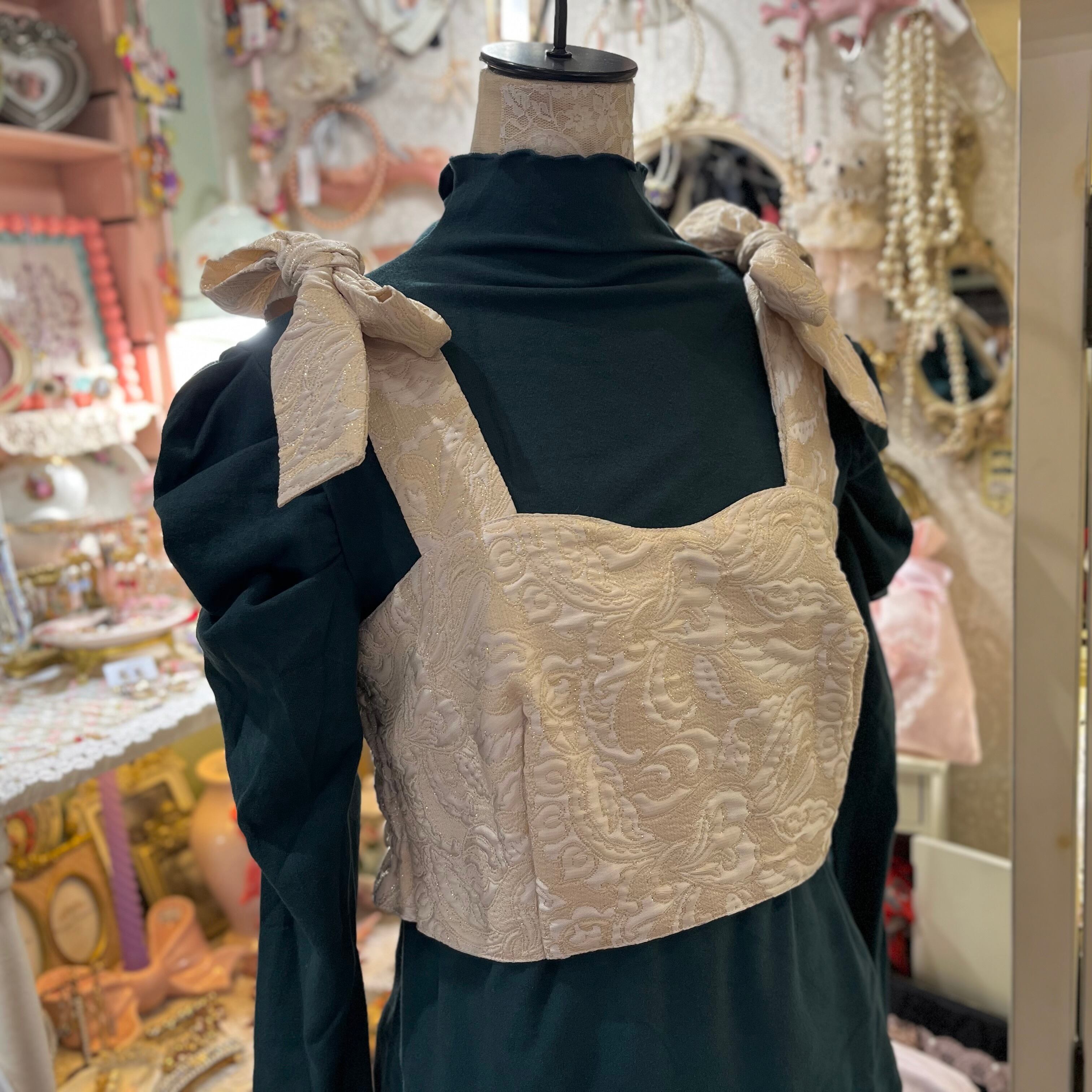 レトロな壁紙のようなダマスク柄がエレガントなビスチェ。