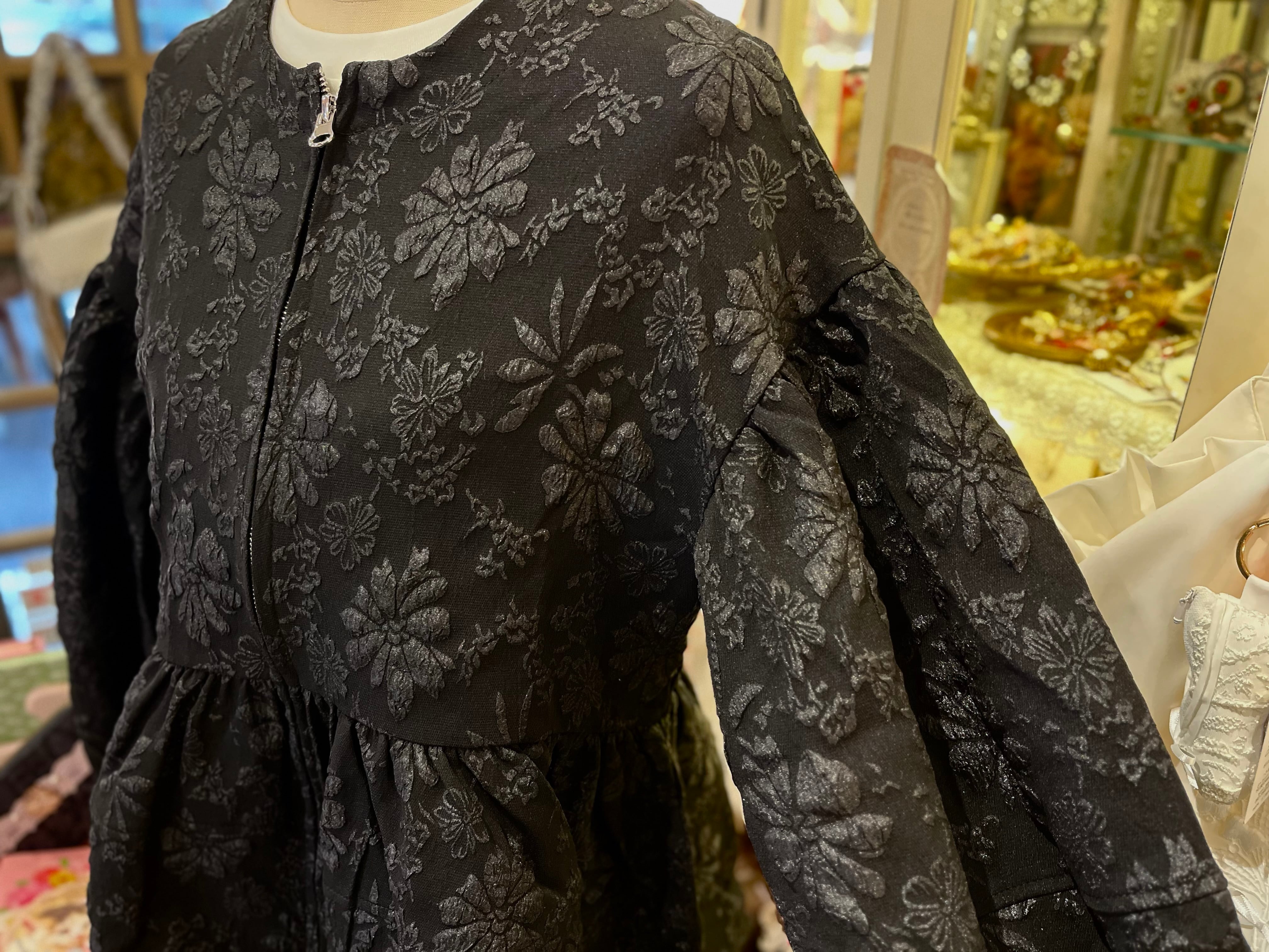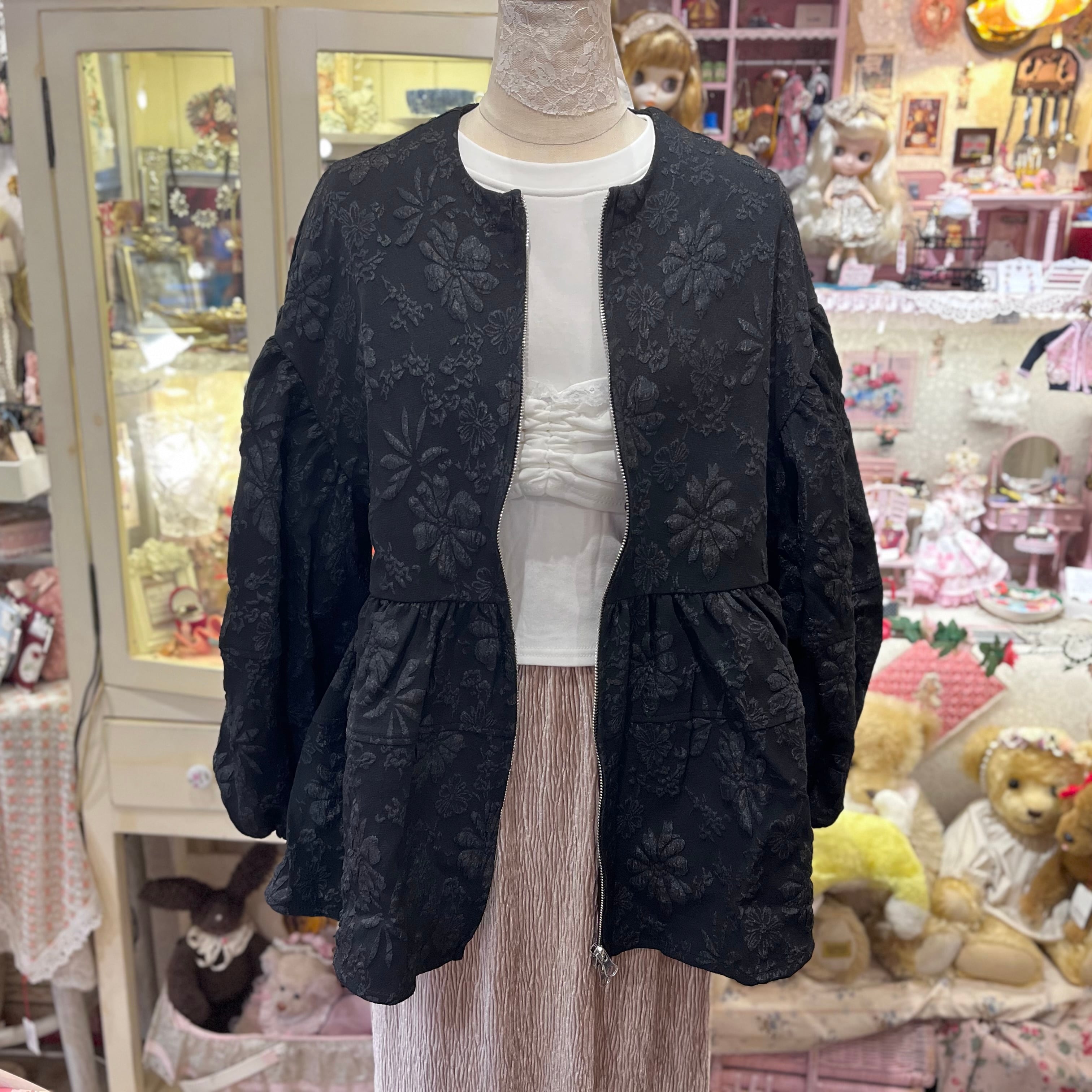 お花柄のジャガード素材のゆったりとしたジャケット。