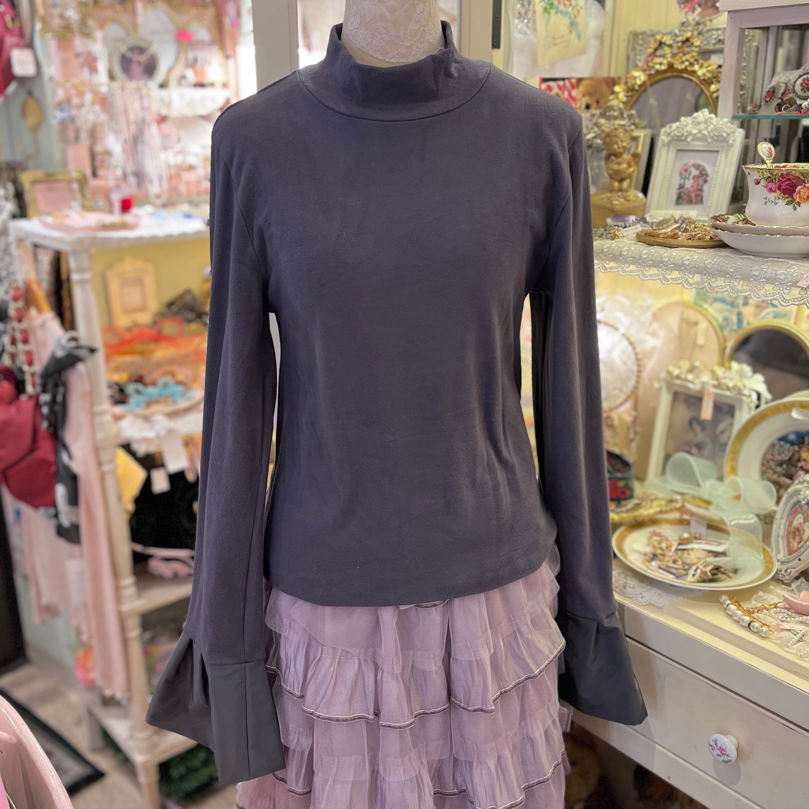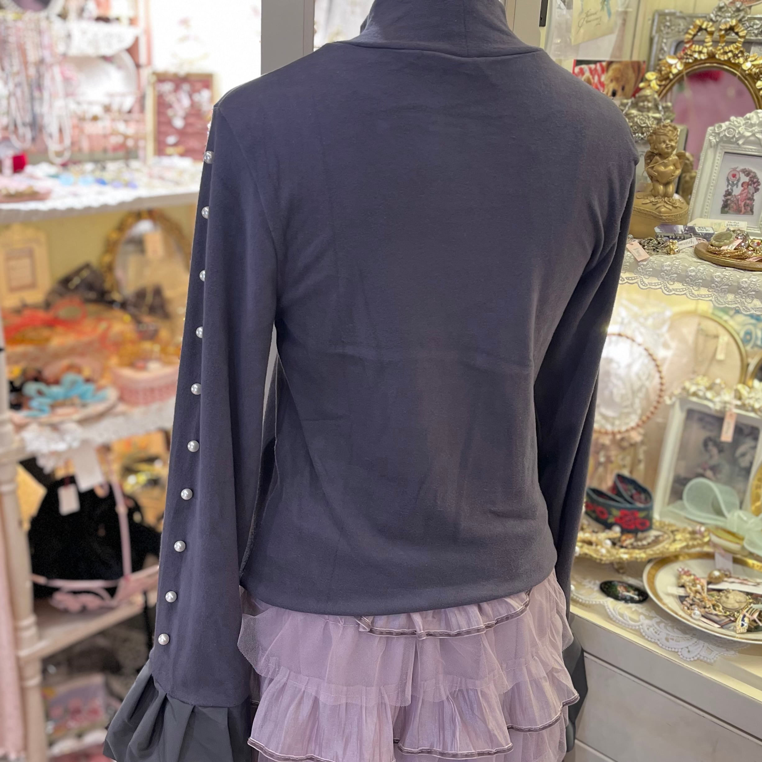 パールをあしらったフレアデザインの袖がかわいらしいアイテムです。