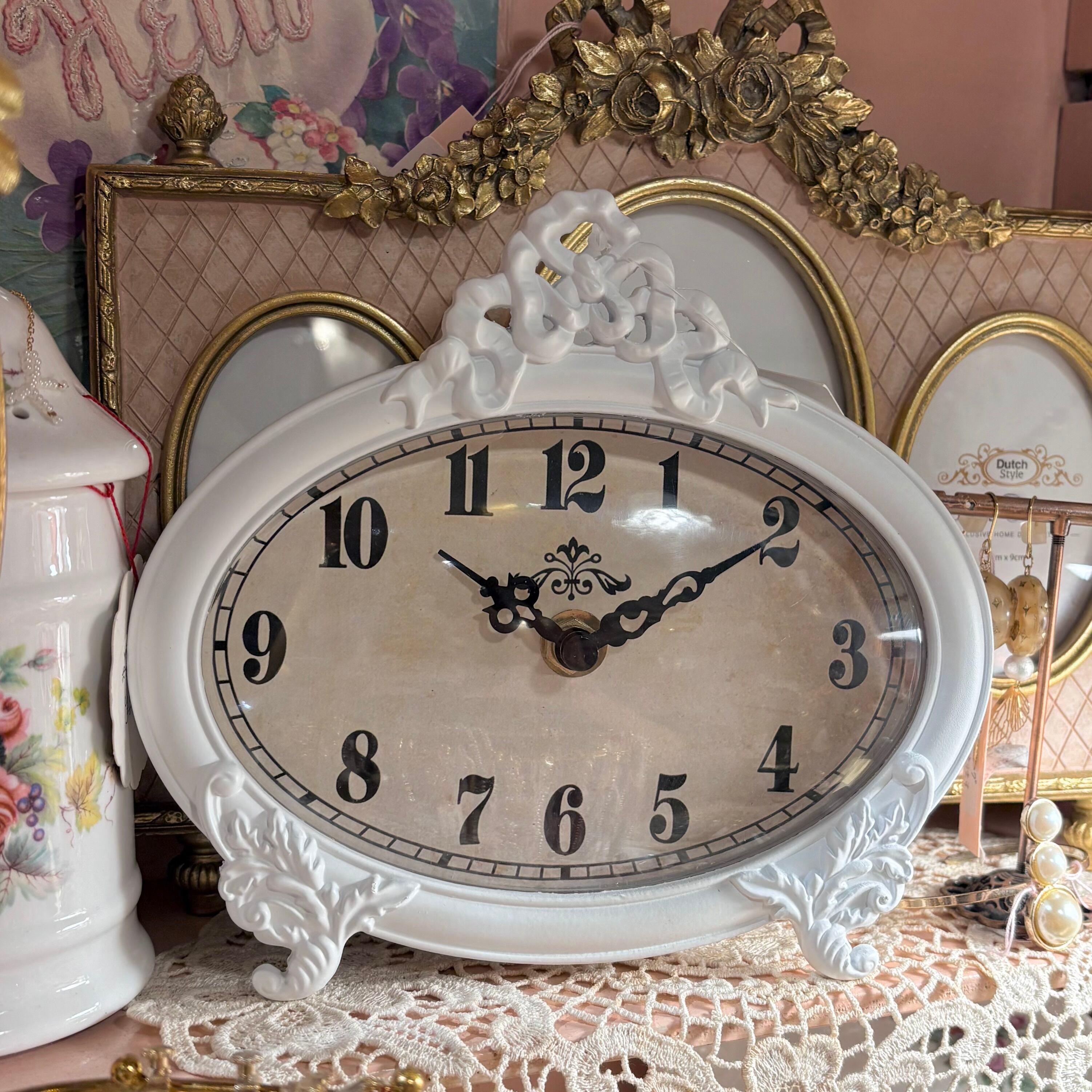 リボンのエンブレムが美しいロココ調の横長の置き時計