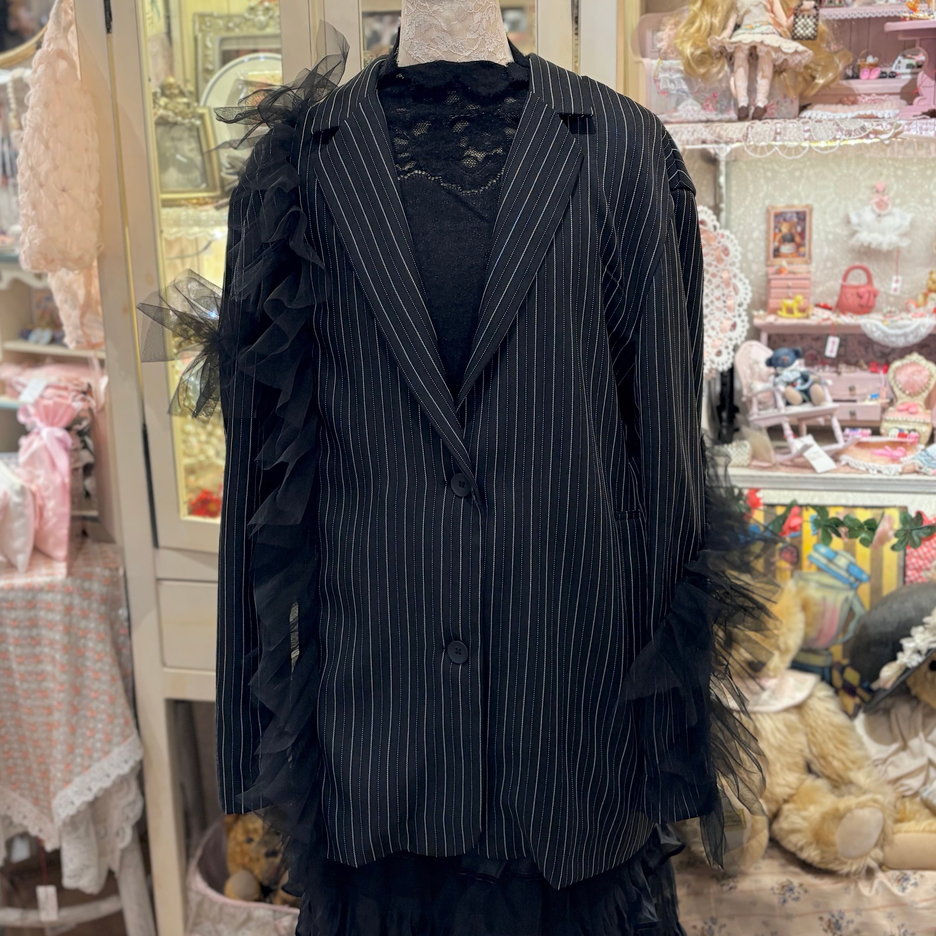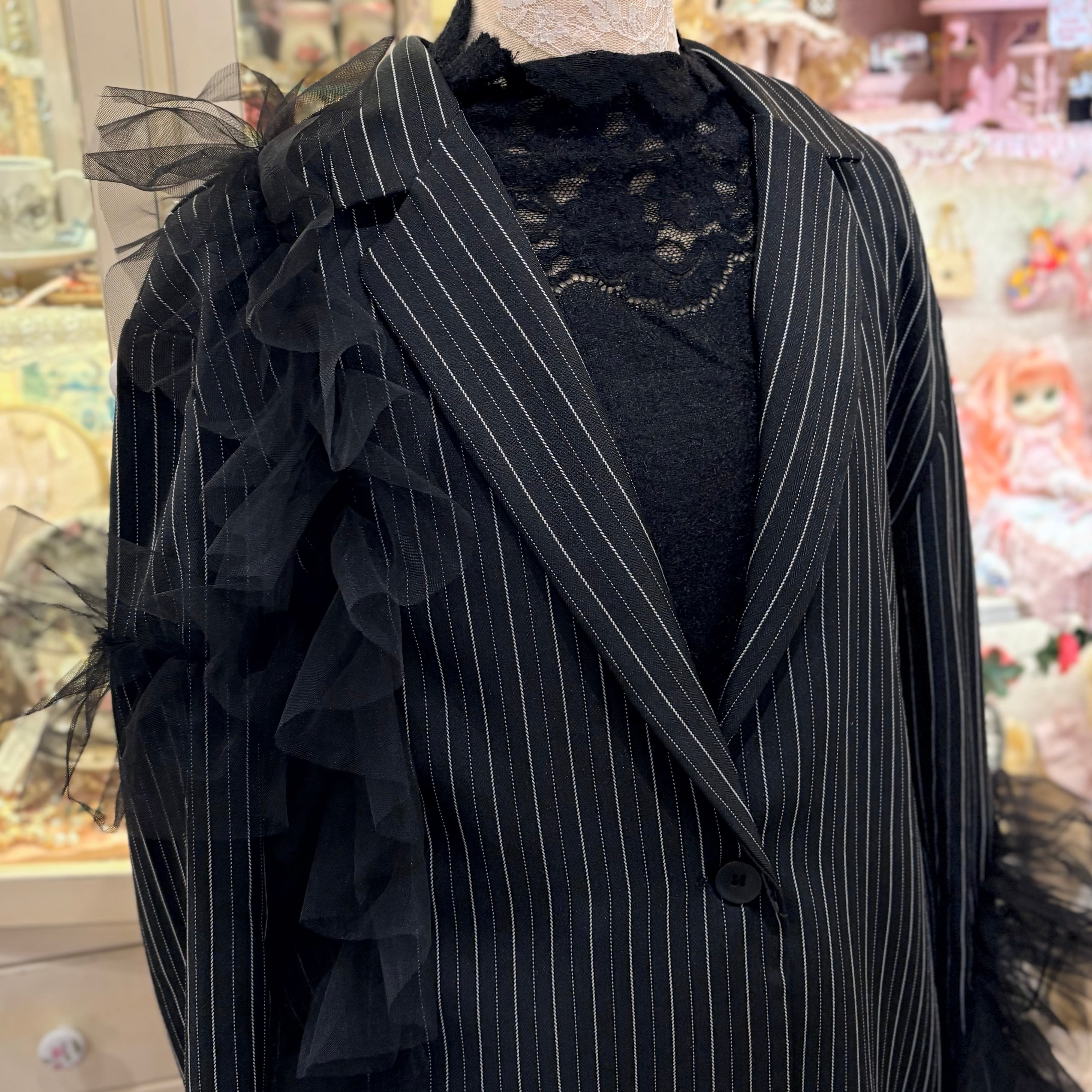 ストライプ×アシンメトリーチュールテーラードジャケット