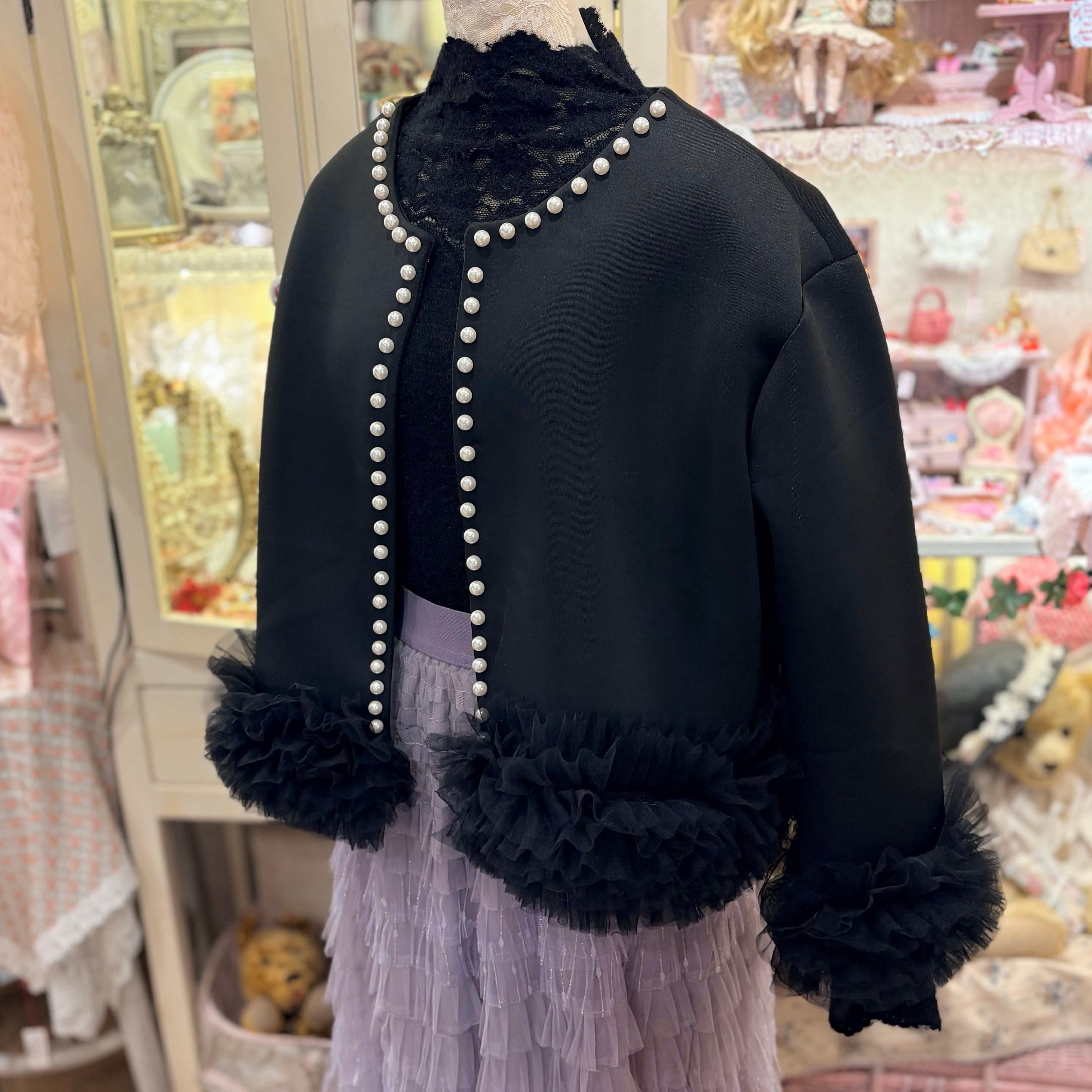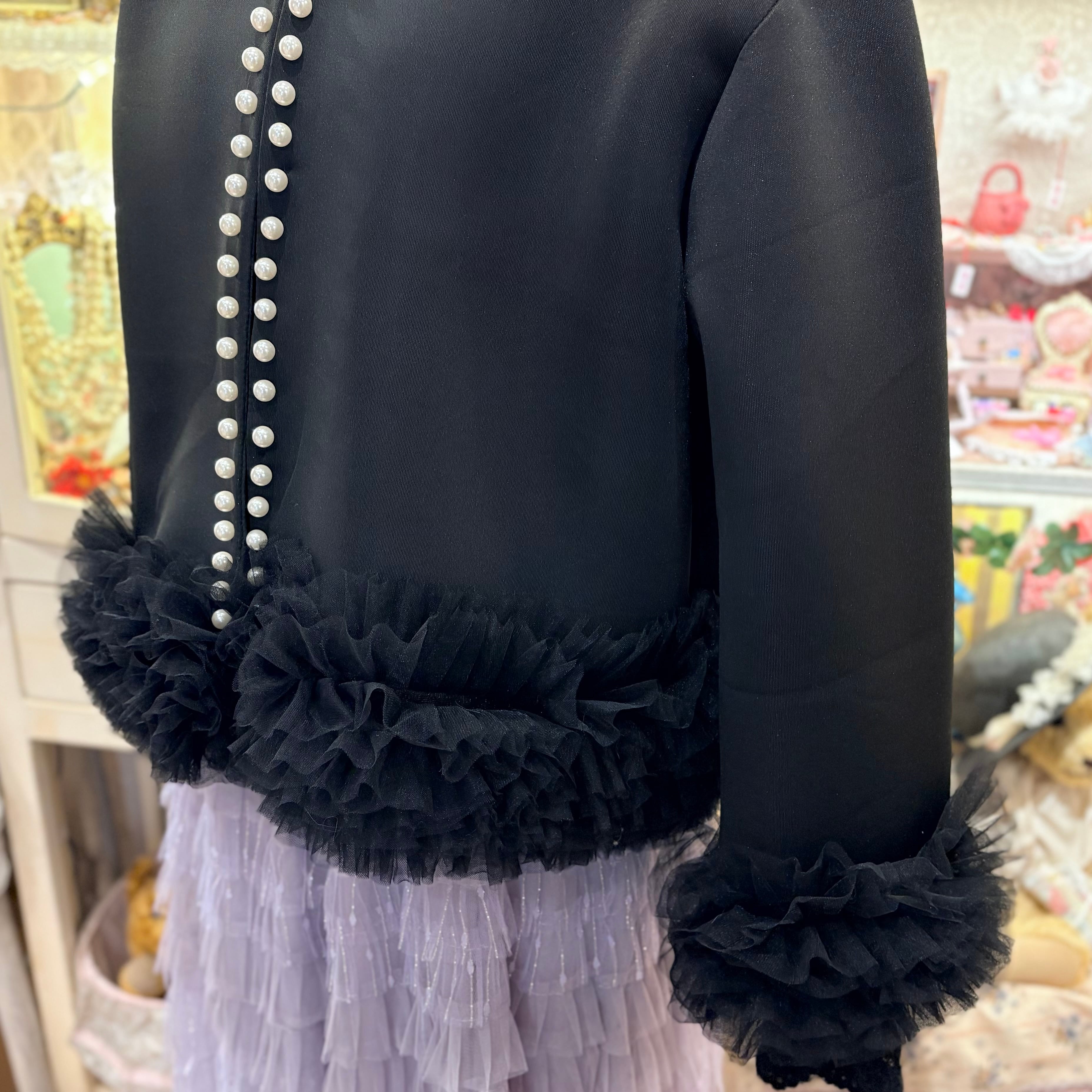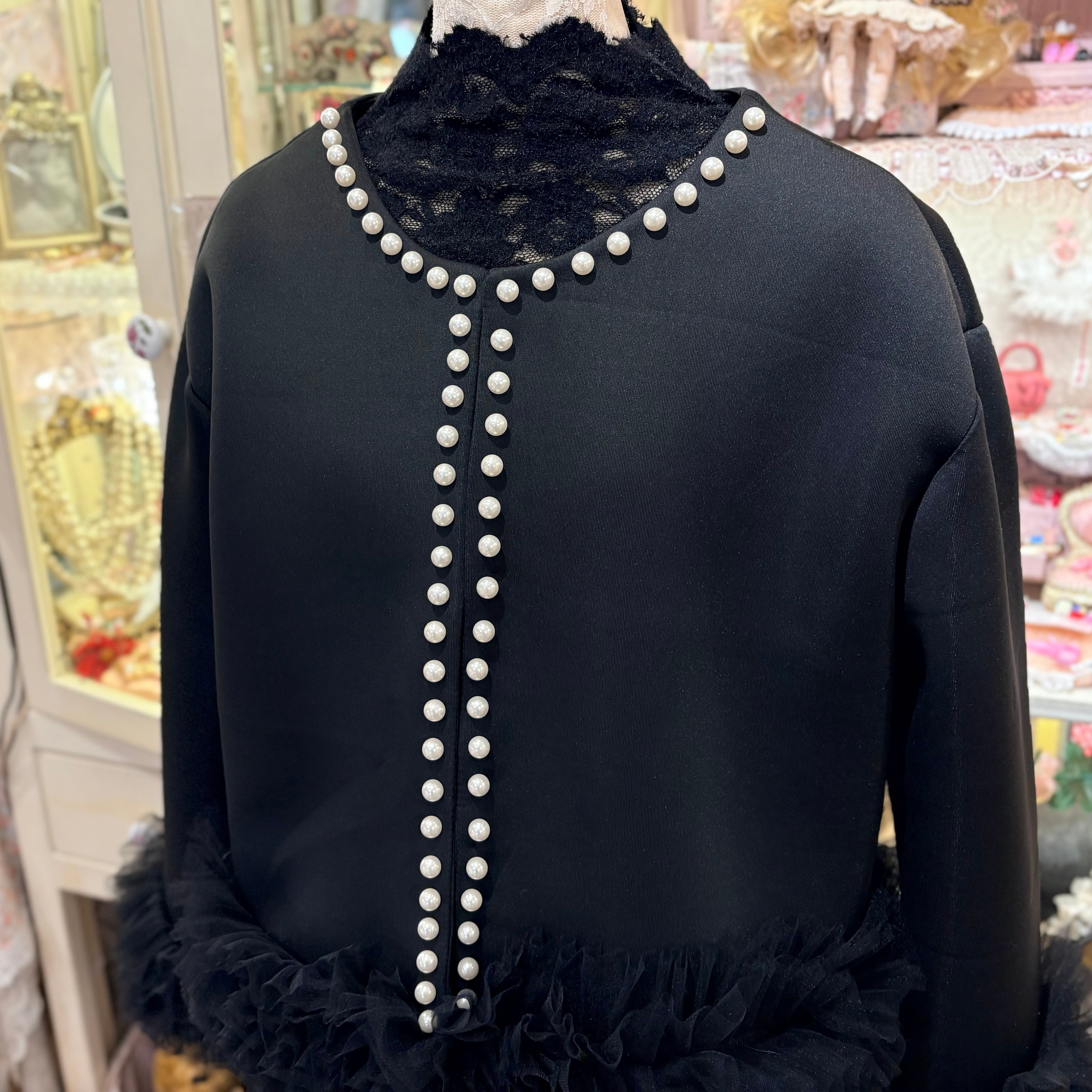裾チュール×パールノーカラージャケット