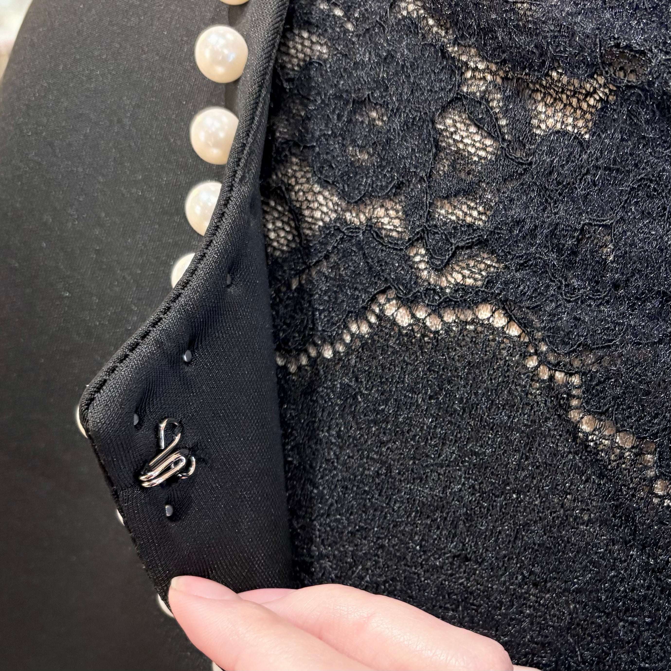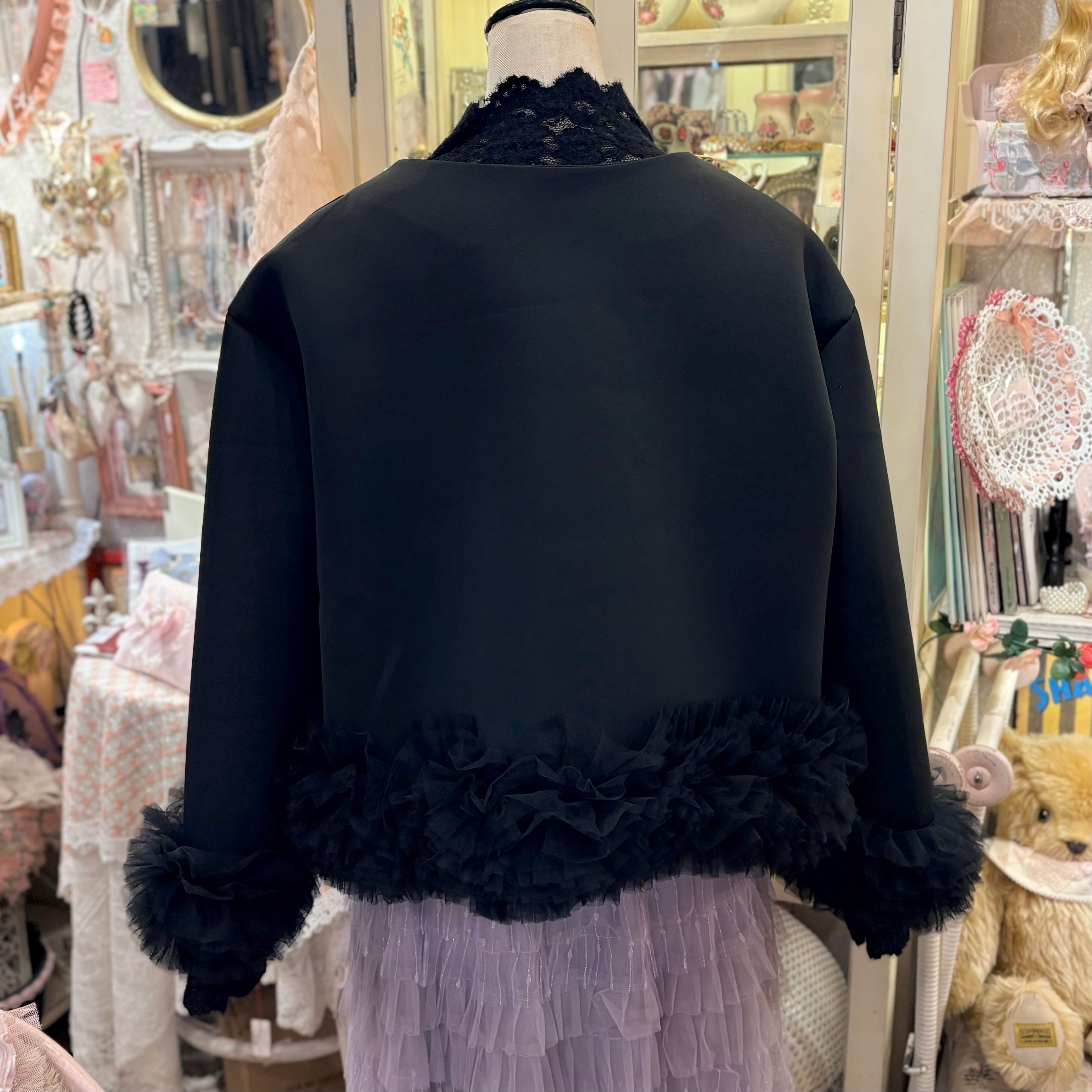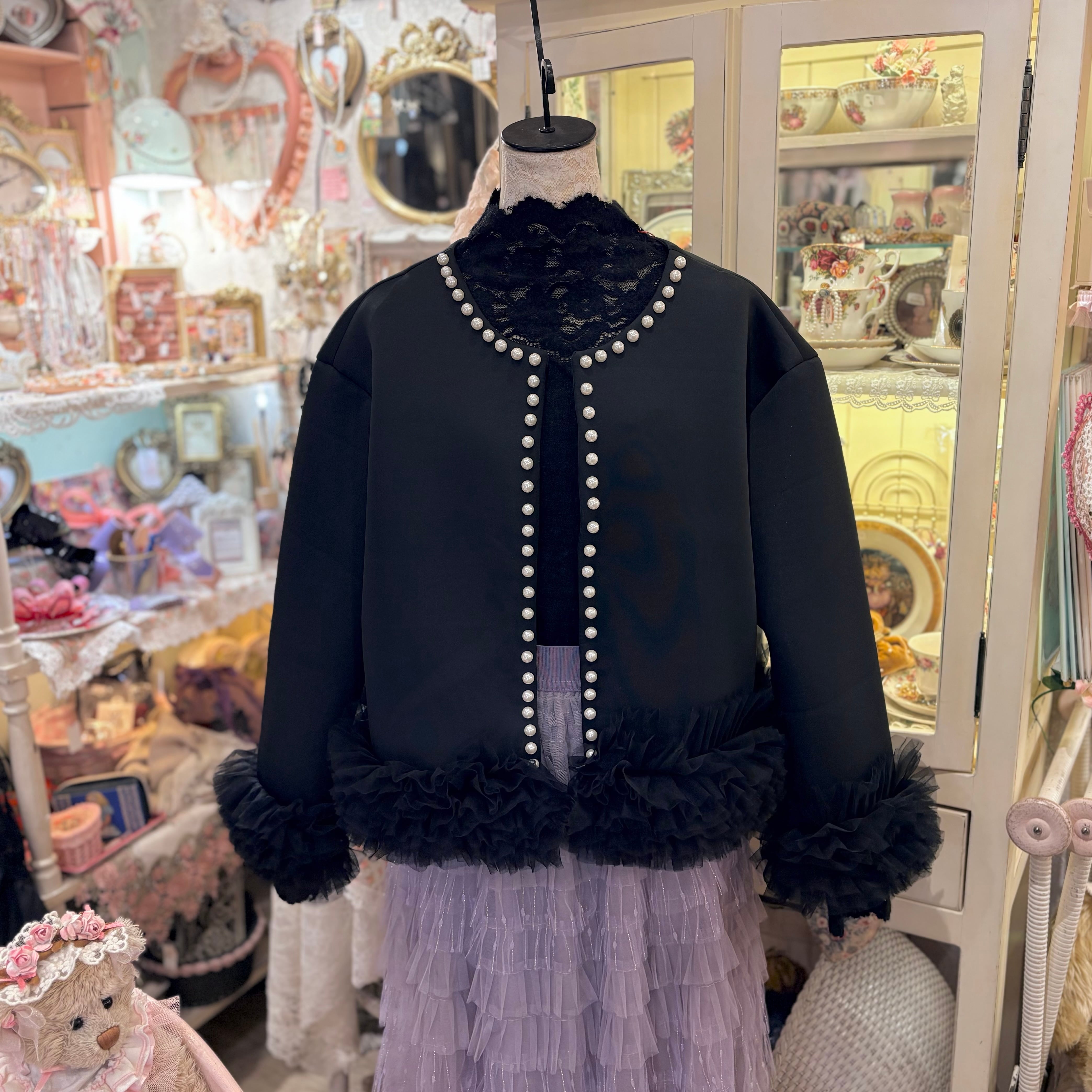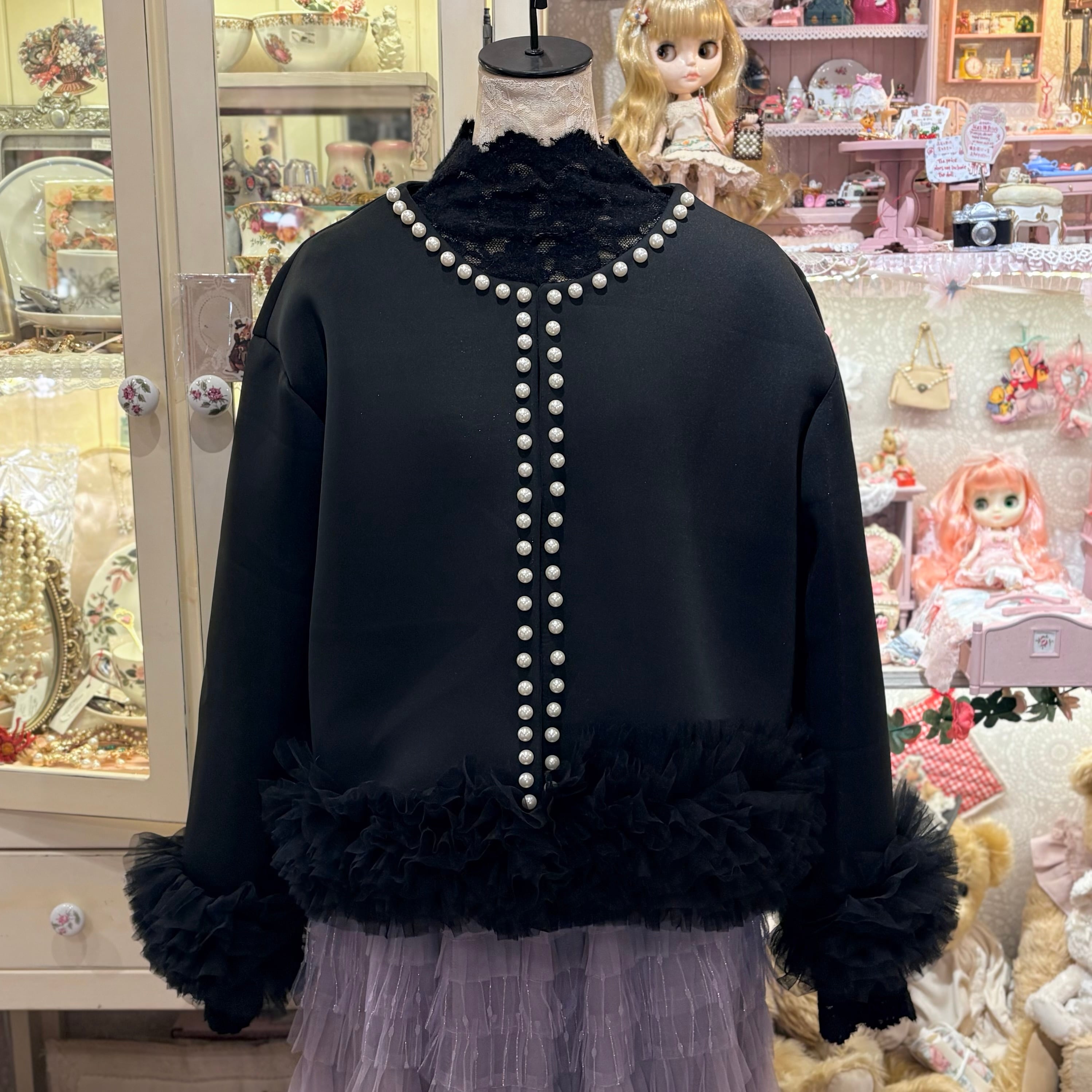 裾チュール×パールノーカラージャケット