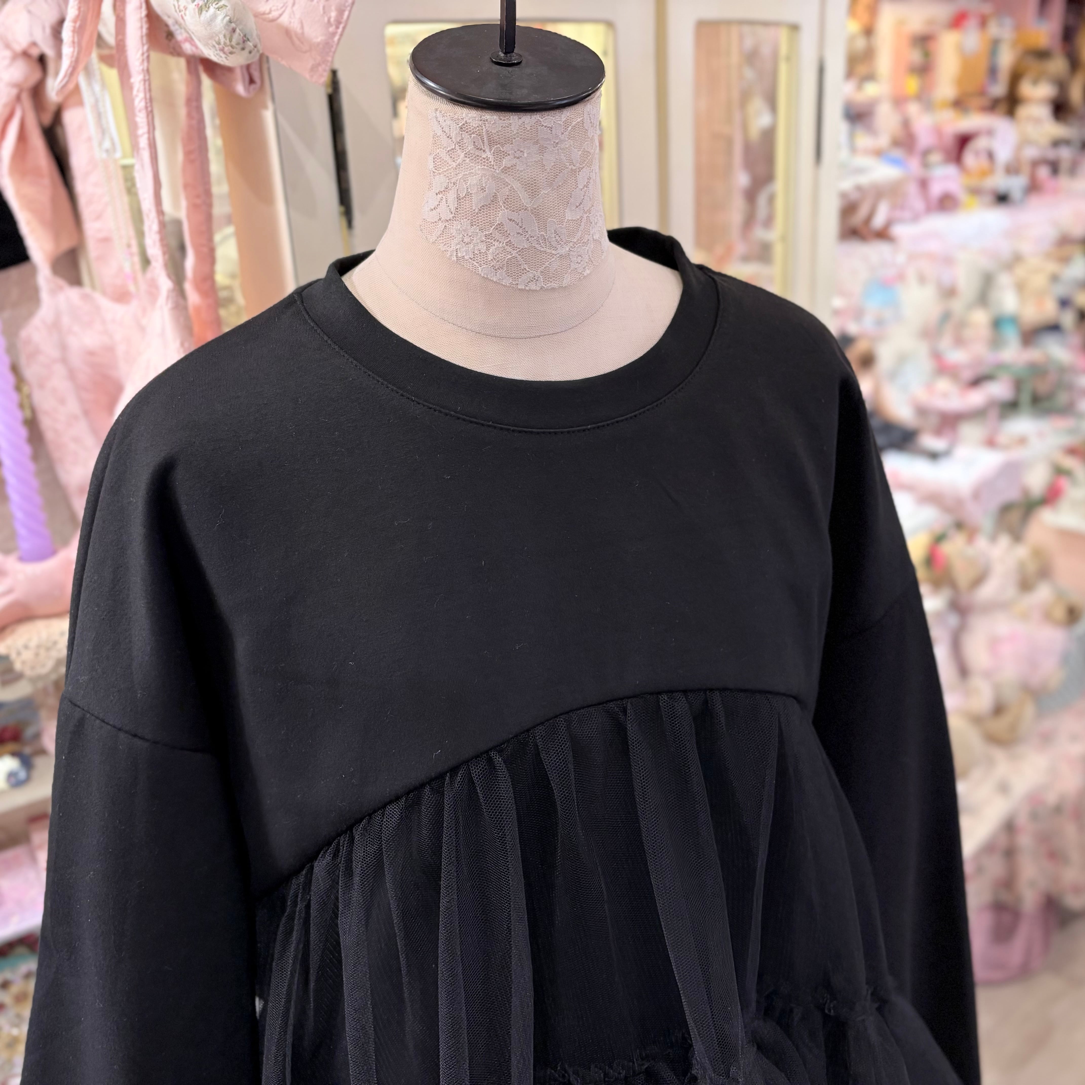 2色のチュールがあしらわれた華やかなスウェットトップス。