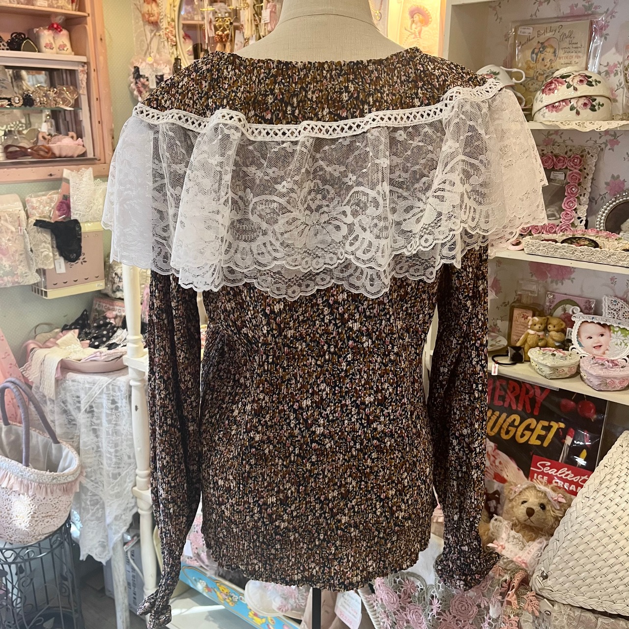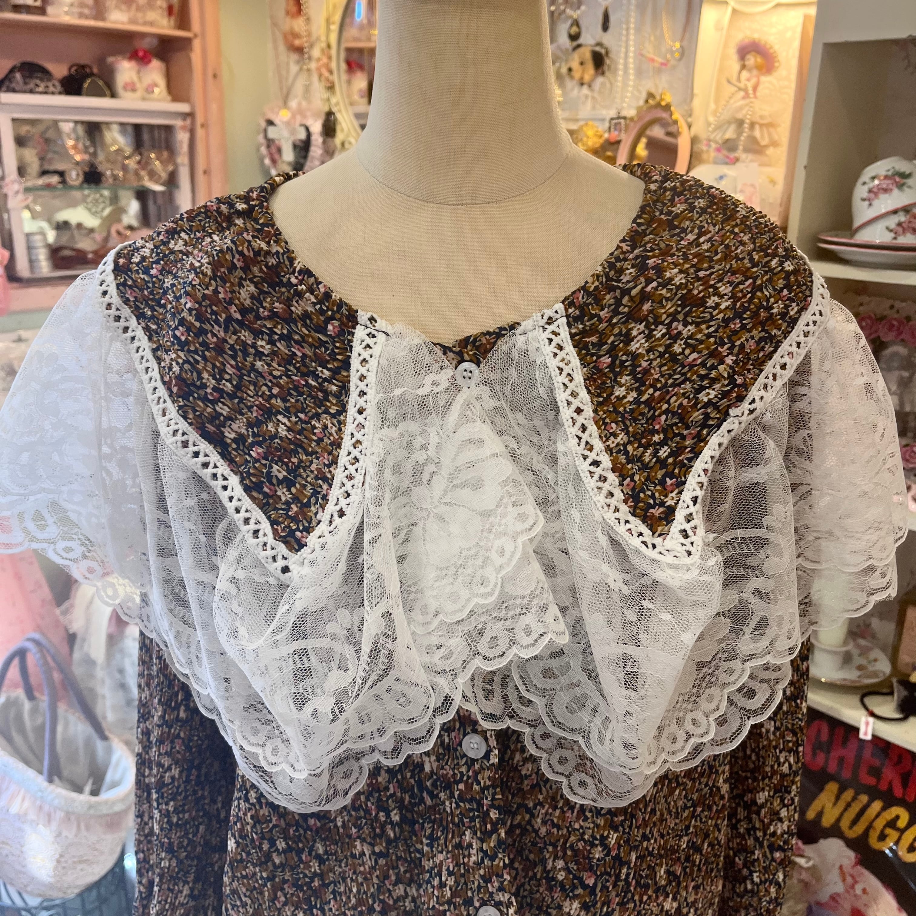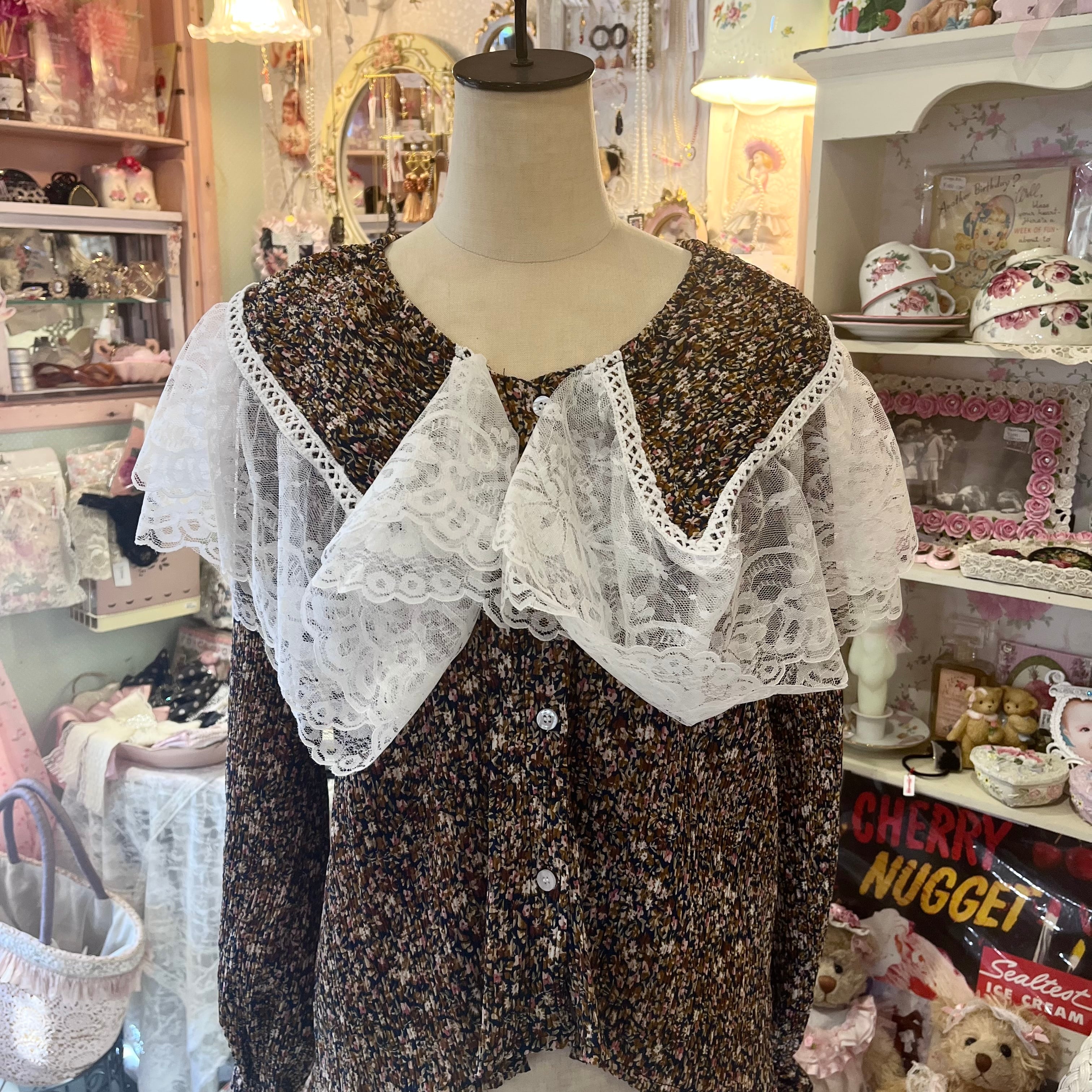レース襟のフラワー柄 楊柳ブラウス