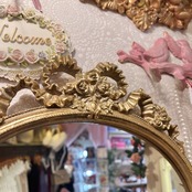 リボンとローズの彫刻がエレガントなの壁掛けタイプの鏡。