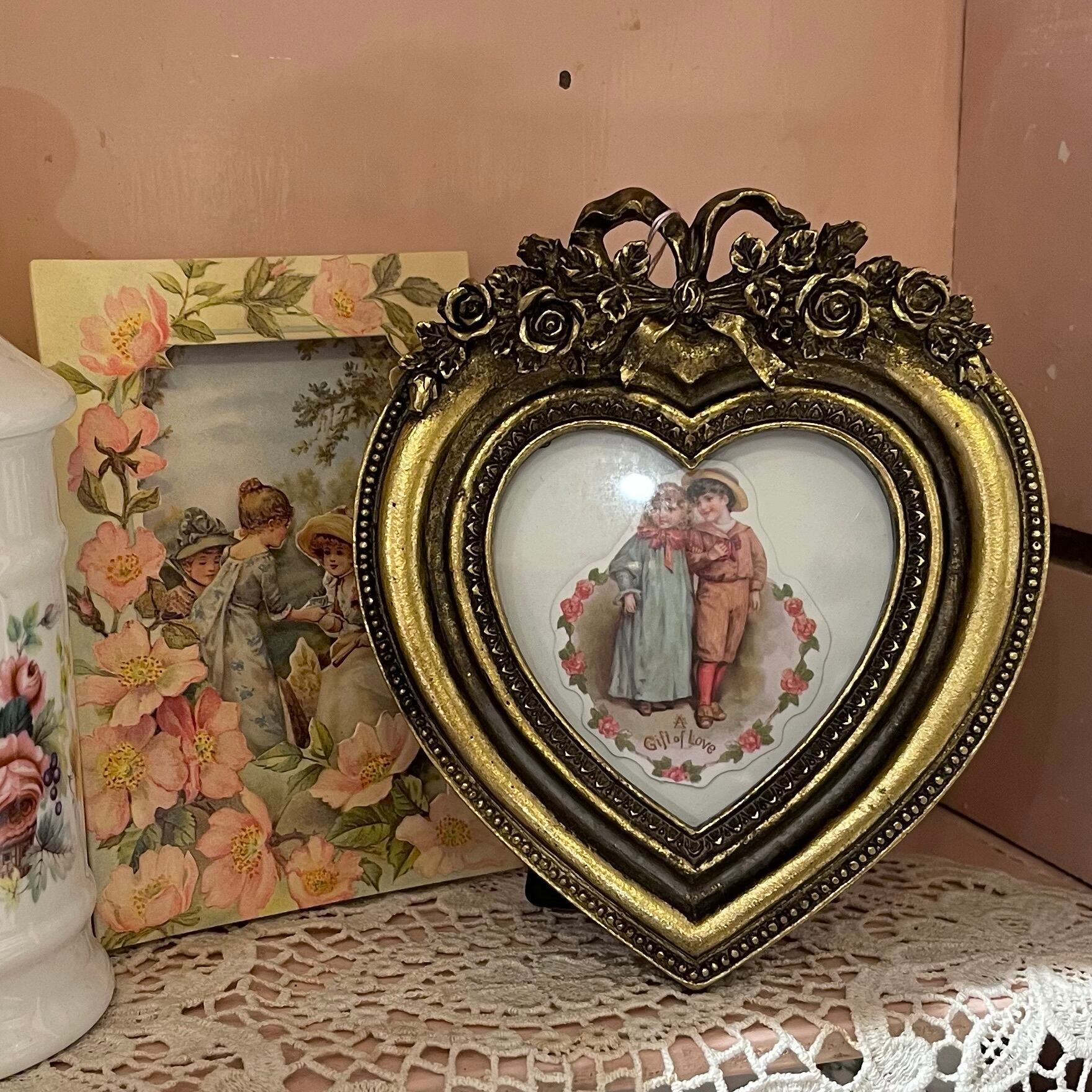 クラシカルなハートエンブレムの小さなフォトフレーム。