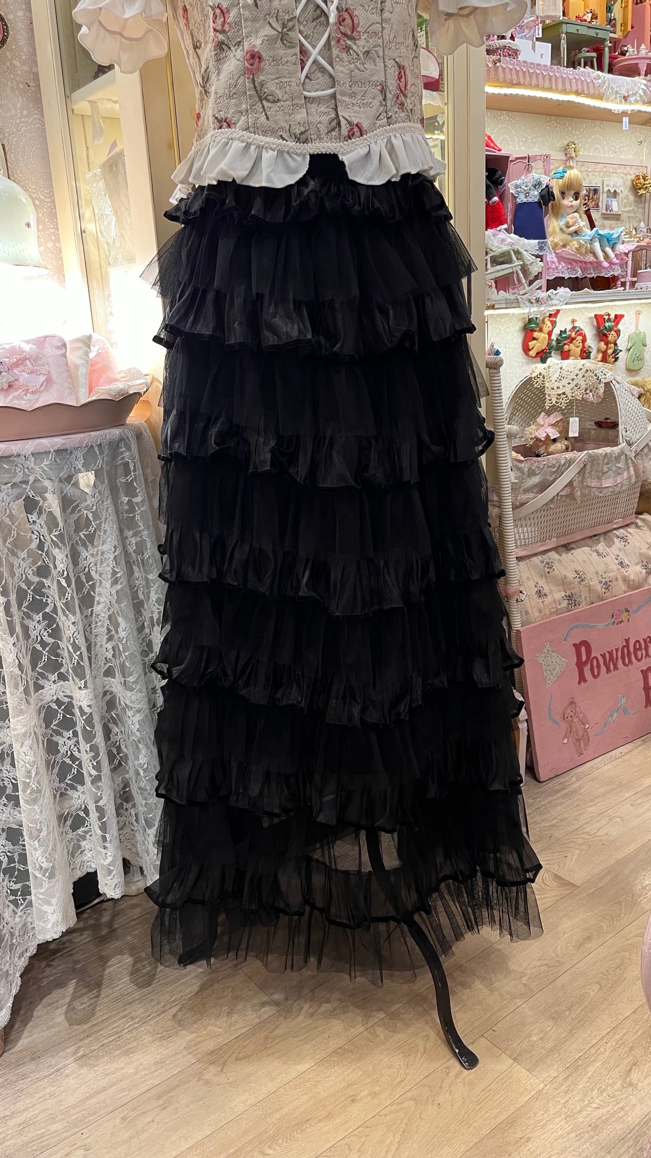 クラシカルチュールフリルロングスカート/ブラック