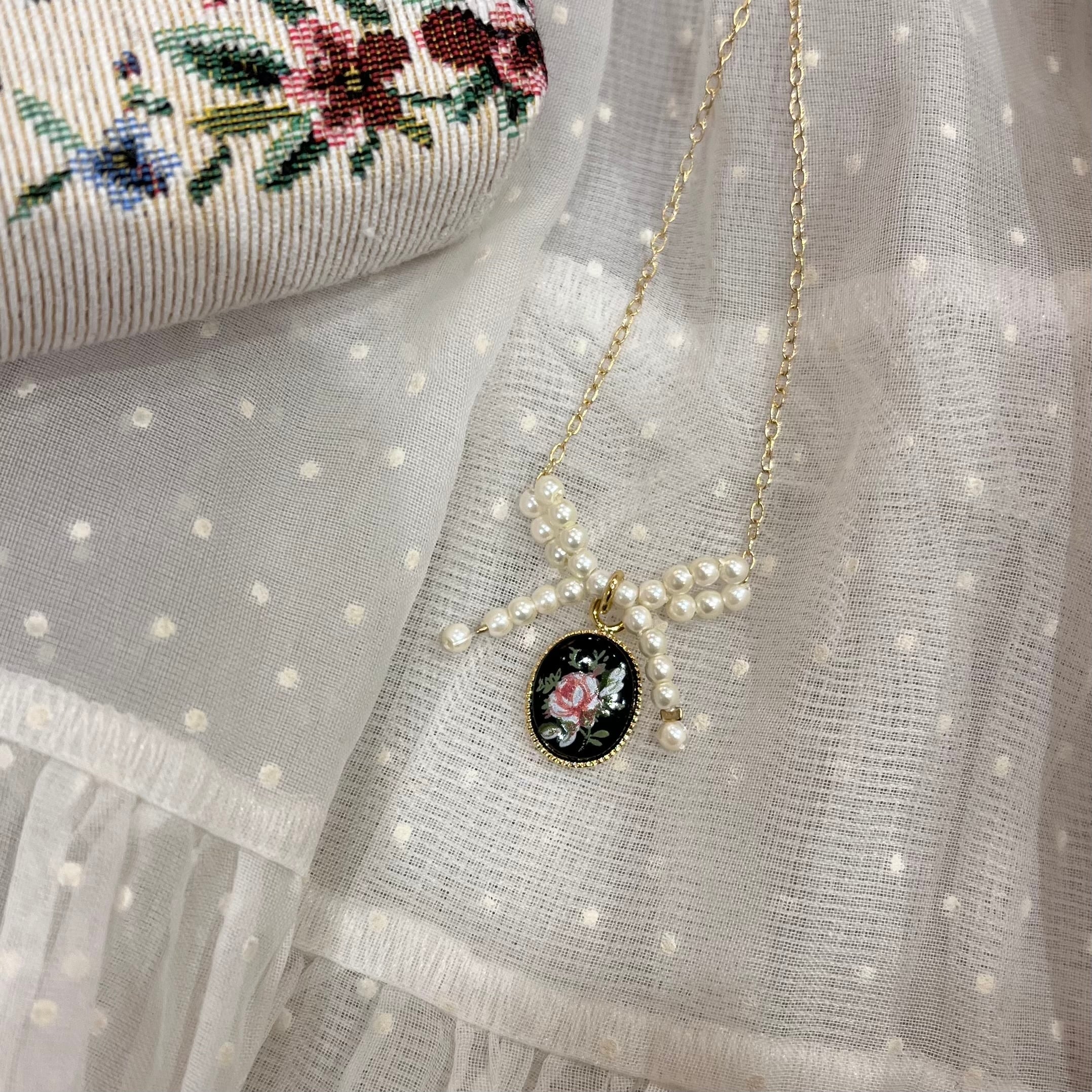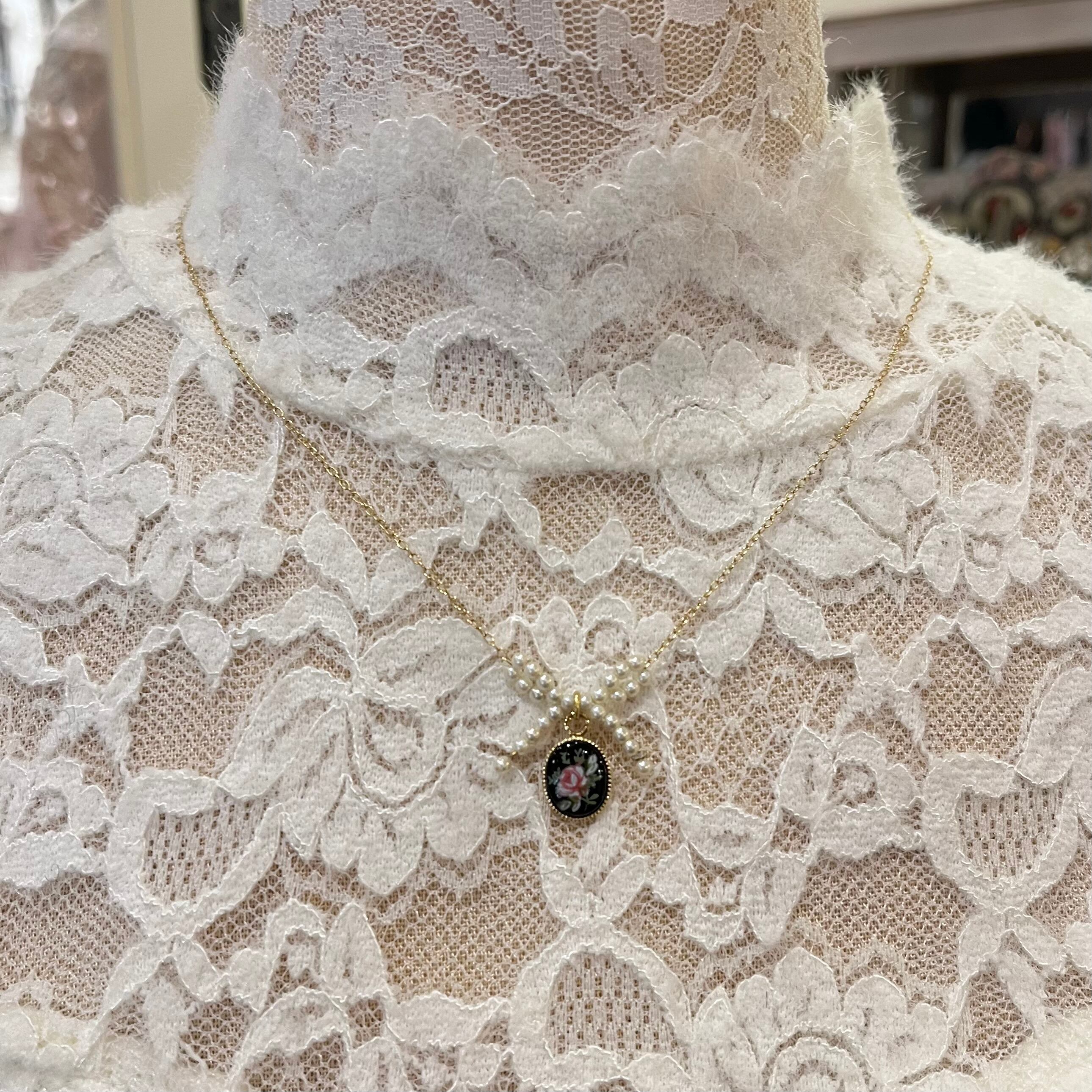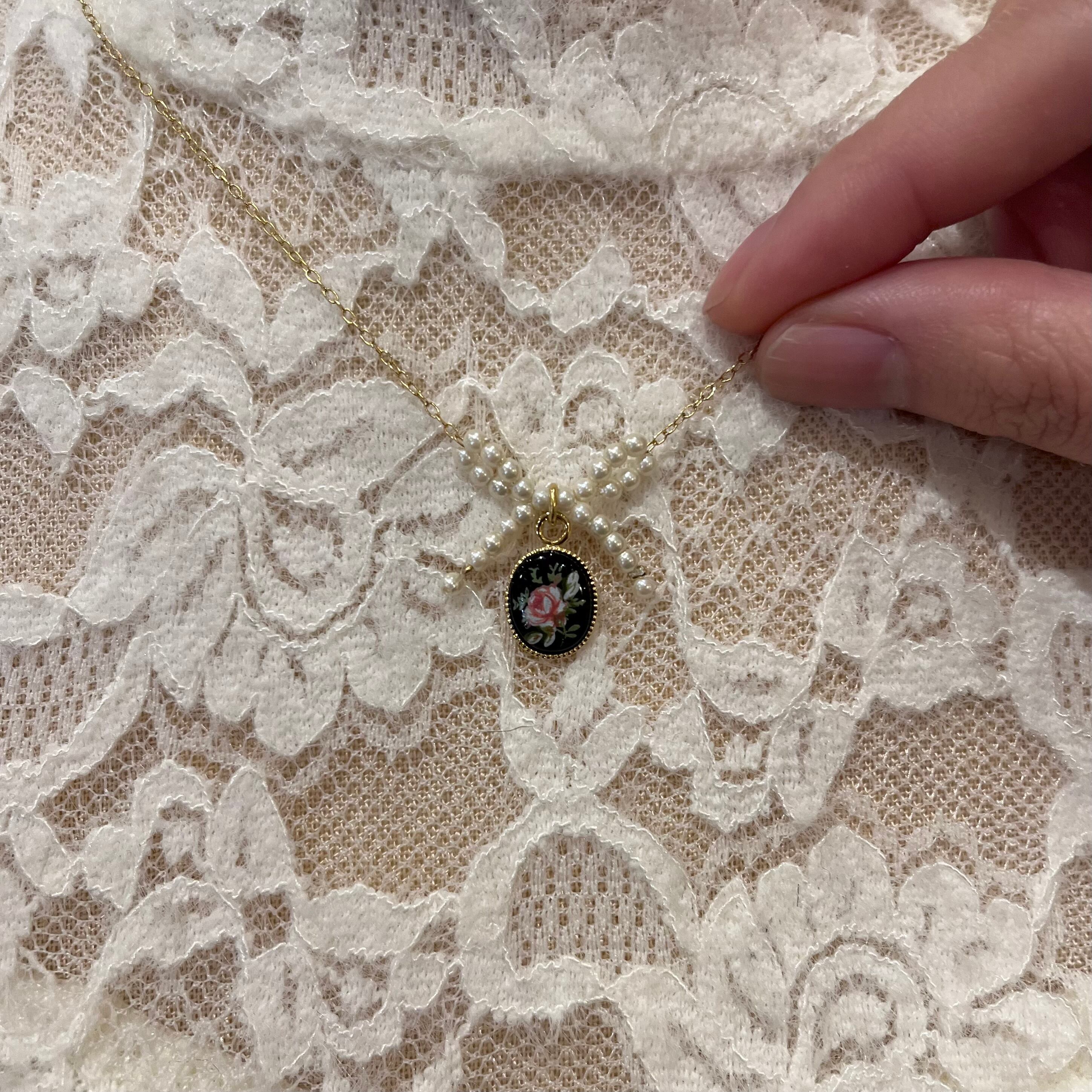 ※トップのローズ柄のカボションはヴィンテージのものを使用しています。