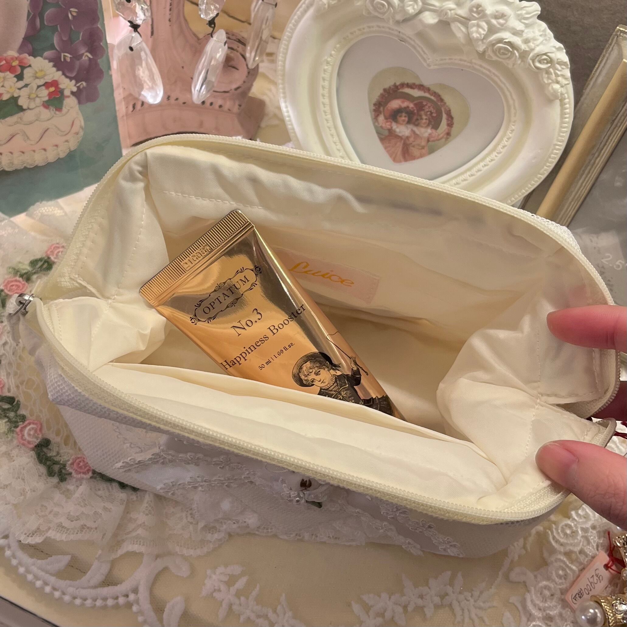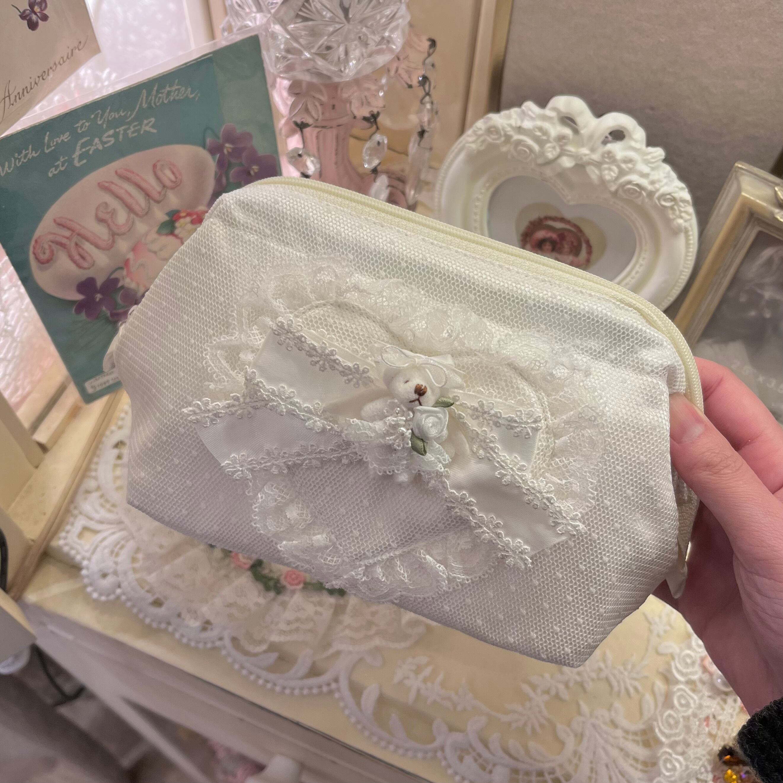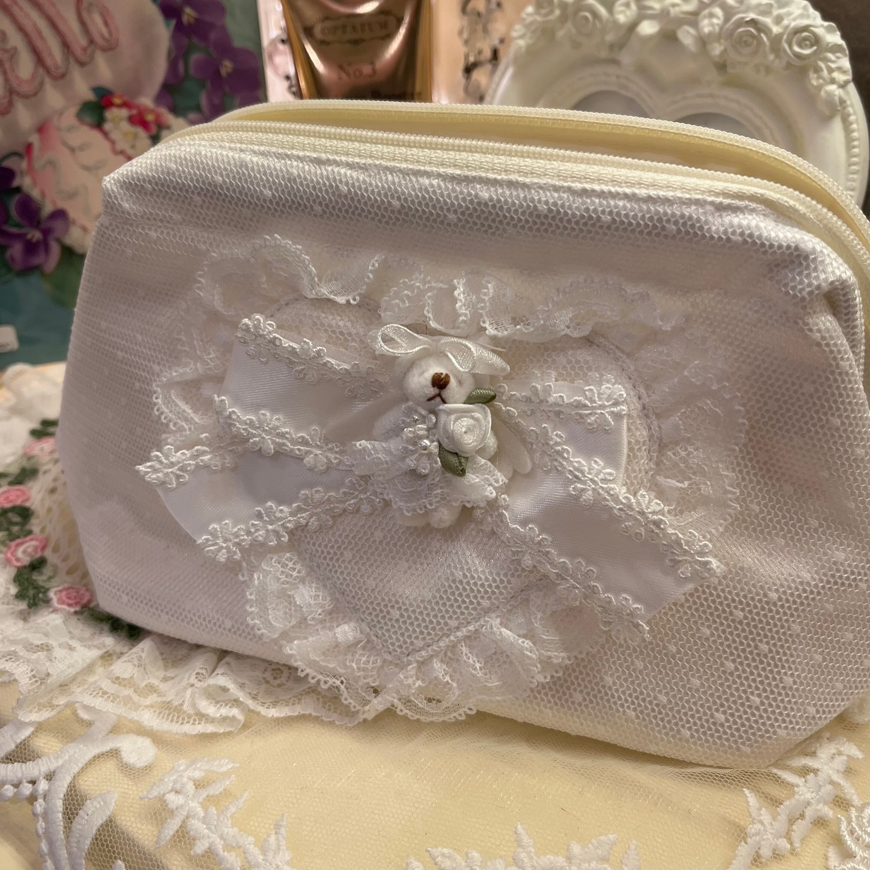 淡い色のチュールやレースに小さなくまさんをあしらったとってもガーリーなワイヤーポーチです♡